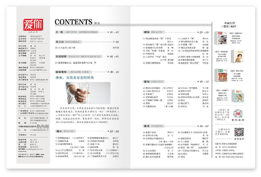 《愛你》“紅版”刊頭為紅色,內(nèi)容涉及身心健康、養(yǎng)心益壽、文史博覽、婚姻家庭、生活百科、美顏美體等各方面的知識(shí),集故事性、藝術(shù)性和趣味性于一體,是“幸福家庭的健康讀本”。