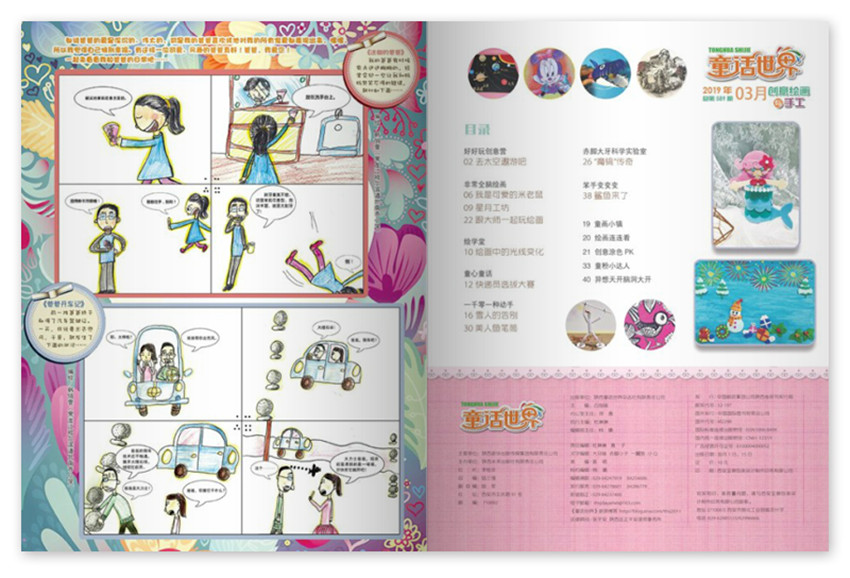 《童話世界·創(chuàng)意繪畫(huà)與手工》主要欄目:好好玩創(chuàng)意營(yíng)、童心童話、紙模新世界、非常全腦繪畫(huà)、一千零一種動(dòng)手、異想天開(kāi)腦洞大開(kāi)、手工小達(dá)人等。