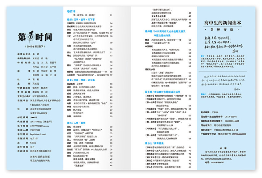 按照實(shí)用、新穎、個(gè)性、快速的宗旨,向高中學(xué)生傳遞新的作文素材信息,為廣大高中學(xué)生豐富知識,拓展視野搭建平臺?!都皶r(shí)時(shí)間》專為高中生量身打造的新聞類讀本!及時(shí)時(shí)間?天下事·萬象記:天下萬象在此一覽無余;情事·同學(xué):你的心事于此可得釋放;及時(shí)時(shí)間?成長事?致青春:微青春的那一抹青澀點(diǎn)贊,幫助高中生開闊視野,從中學(xué)會觀照自我,得到教益,并且能夠錘煉恰當(dāng)?shù)奶幨缿B(tài)度,打造應(yīng)有的宏觀格局。