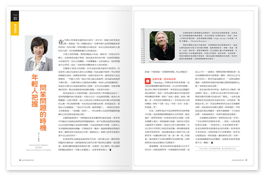 臺(tái)灣出版的一本專業(yè)廣告雜志,每期介紹臺(tái)灣近期的廣告策劃案例,品牌推廣案例和趨勢(shì),和廣告動(dòng)態(tài),是非常值得訂閱的一本專業(yè)廣告策劃類雜志。為廣告公司、傳播媒體、企業(yè)行銷公關(guān)部門(mén)、喜歡動(dòng)腦、重視創(chuàng)造力的人士必讀。我們認(rèn)定“小動(dòng)腦,可創(chuàng)造大世界”因此,標(biāo)定創(chuàng)刊的宗旨是溝通創(chuàng)意、鼓勵(lì)創(chuàng)意精神,激發(fā)動(dòng)腦風(fēng)氣。