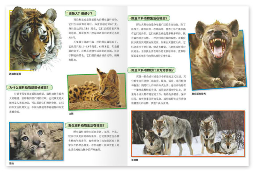 全球視野的指示地圖,讓孩子建立廣闊的知識(shí)視域。每章開始前都有一張高清、大幅的指示地圖,告訴孩子接下來所講的內(nèi)容都發(fā)生在哪里。獨(dú)特視角的提問+考考你+科學(xué)詞匯表,強(qiáng)烈吸引孩子互動(dòng)。書中每個(gè)知識(shí)點(diǎn)都以提問的方式提出:禿鷲真的是禿頭嗎?白色的熊都是北極熊嗎?