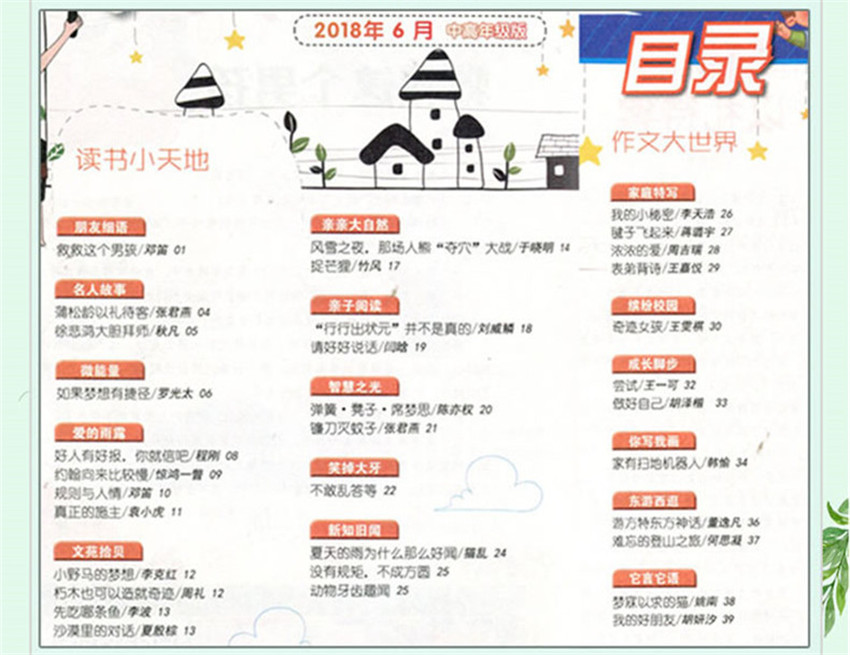 《讀書與作文》主要欄目:天下名人、作文大世界、愛的雨露、親親大自然、機(jī)靈鬼大本營、笑掉大牙、智力加油站、文苑拾貝、讀書筆記等。