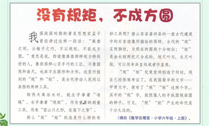 請好好說話,我曾經(jīng)講過這樣一段話:“離婁之明,公輸子之巧,不以規(guī)矩,不能成方圓。 ”意思是說,即使像離婁那樣視力特別好的人,魯班那樣心靈手巧的工匠,不靠圓規(guī)和曲尺,也畫不出圓形和方形。這里所提到的“規(guī)”和“矩”,是古代勞動人民用以畫圖的兩種工具。