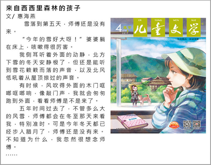 《兒童文學》創(chuàng)辦于1963年,月刊,單期240頁,《兒童文學》始終堅持以兒童為本位的原則,即:以兒童為中心、以兒童為主體,服務(wù)于兒童、陶冶兒童心性;堅持高品位、高格調(diào)、高質(zhì)量的純文學宗旨。