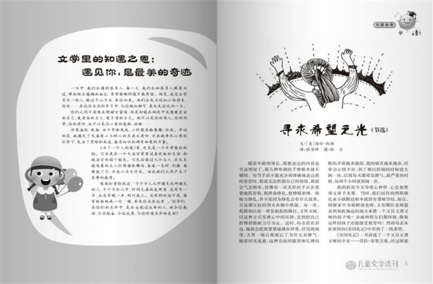 《兒童文學(xué)選刊》,創(chuàng)刊于1981年,期望通過自身在傳播領(lǐng)域的資源優(yōu)勢,給我們帶來高品質(zhì)生活,紙張開本:16開,國內(nèi)刊號:CN:31-2053/I。每期內(nèi)容配有卡通形式的插圖,生動有趣,故事為主,激發(fā)讀者對語文學(xué)習(xí)、寫作的興趣。定位專業(yè)化,讓讀者花少的時間和金錢讀到優(yōu)質(zhì)的兒童文學(xué)作品,并配有導(dǎo)讀性的介紹、評論,讓讀者在期刊中領(lǐng)略語文、感受寫作的無窮魅力。
