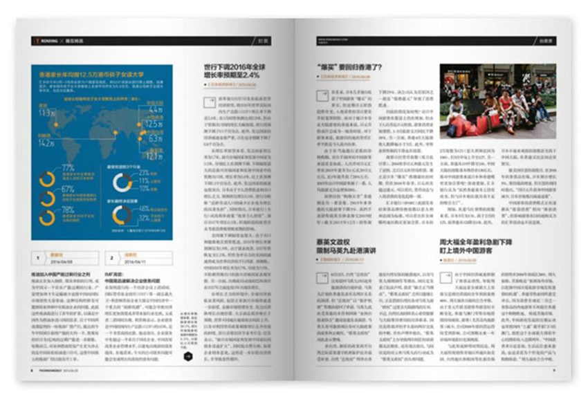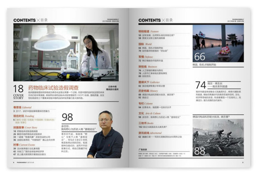 《鳳凰周刊》創(chuàng)辦于2000年,旬刊,單期96頁,《鳳凰周刊》致力成為兩岸三地溝通聯(lián)系的橋梁,以中華傳統(tǒng)文明所推崇的秉筆直書的史學立場,向海內(nèi)外讀者介紹真實的兩岸歷史人物,拓展了中國媒體報道的新的可有空間。
