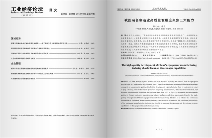 《工業(yè)經(jīng)濟論壇》雜志以“思想才是力量之源”為理念,以“為工業(yè)經(jīng)濟決策者服務”為宗旨,踐行“探究轉(zhuǎn)型之道,求解變革之理”,雜志是由工業(yè)和信息化部主管,賽迪工業(yè)和信息化研究院主辦。