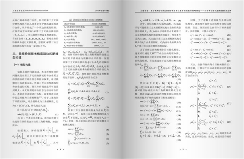 為實現(xiàn)服務績效的提升,通過研究企業(yè)和第三方無損檢測機構(gòu)之間特種設備無損檢測服務的供需匹配問題,提出了一種模糊多目標決策方法:首先,構(gòu)建企業(yè)與第三方無損服務機構(gòu)的評價指標;其次,對無損檢測服務供需問題進行描述;后,根據(jù)模糊多目標決策方法進行求解,將語言評價信息轉(zhuǎn)化為三角模糊數(shù),終計算得到匹配結(jié)果。