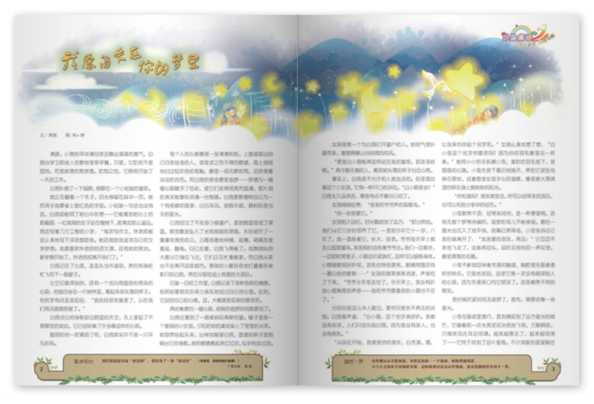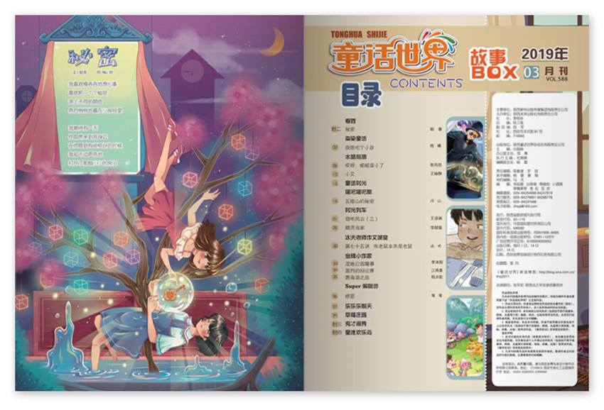《童話世界·故事》主要欄目:柒染童話、冰夫老師作文課堂、金牌小作家、時(shí)光列車、鬼才畫秀、草莓莊園、老乖的后花園等。