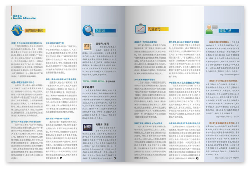 《股市動(dòng)態(tài)分析》創(chuàng)辦于1990年,周刊,單期96頁(yè),《股市動(dòng)態(tài)分析》雜志是中產(chǎn)階層投資雜志,以成為中國(guó)本土金融投資理財(cái)專(zhuān)業(yè)期刊為目標(biāo),不斷致力于向社會(huì)廣泛的投資團(tuán)體與個(gè)人提供具時(shí)效性及具專(zhuān)業(yè)價(jià)值的資訊。