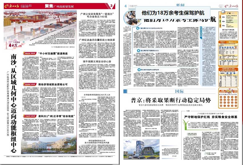 《廣州日報》關(guān)注全球新聞、中外政治局勢、時事評論、社會民生、文化藝術(shù)、體育賽事等各個領(lǐng)域,進行全方位、多維度的報道,以獨特的視角、深入的思考為特點,以多元化的文化視野為引領(lǐng),為讀者提供權(quán)威和全面的資訊服務(wù)。同時,它還特別關(guān)注廣東省地區(qū)的各種新聞和動態(tài),包括當(dāng)?shù)卣恼邉討B(tài)、經(jīng)濟發(fā)展、文化活動、社會民生、科技創(chuàng)新等方面的新聞,全面報道廣東省民情、政情以及經(jīng)濟、文化、社會等領(lǐng)域的發(fā)展變化,為讀者提供全方位、全天候的權(quán)威消息。