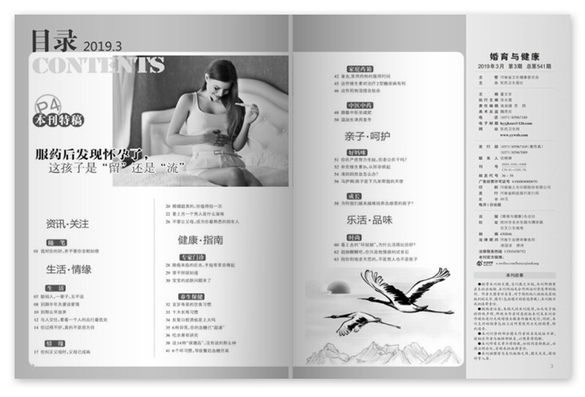 《婚育與健康》創(chuàng)辦于1993年,半月刊,單期66頁(yè),《婚育與健康》雜志是一本集婚、育、性知識(shí)為一體的雜志,是一家宣傳生殖保健的科普期刊,向大眾提供戀愛(ài)、婚姻、生育、性知識(shí)及現(xiàn)代生活保健等科學(xué)知識(shí)。