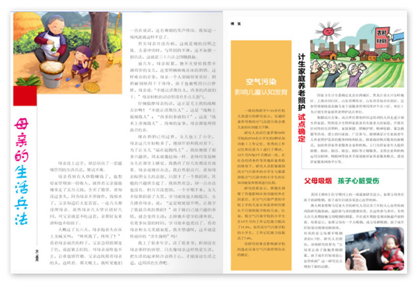 《家庭健康·婚育與優(yōu)生》主要欄目:博覽、特別話題、家庭發(fā)展、孕產(chǎn)課堂、寶貝健康、親子時(shí)刻、兩性頻道、吃出健康、安全用藥、計(jì)生園地。