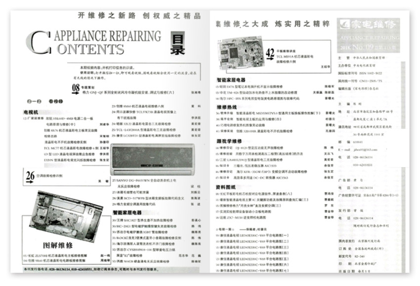 《家電維修》主要欄目:白電講座、電子課堂、維修在線、每期一圖、電腦&通信、小家電&機電等。