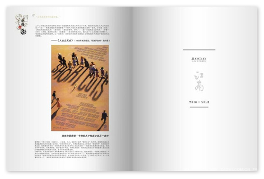 《江南》,創(chuàng)刊于1980年,期望通過自身在傳播領(lǐng)域的資源優(yōu)勢(shì),給我們帶來高品質(zhì)生活,紙張開本:大16開,國(guó)內(nèi)刊號(hào):CN:33-1034/I。