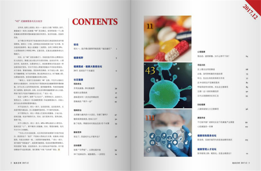 《健康管理》主要欄目:健康視野、健康圓桌、健康大數(shù)據(jù)論壇、社區(qū)健康、健康保險(xiǎn)服務(wù)論壇、健康管理人才論壇。
