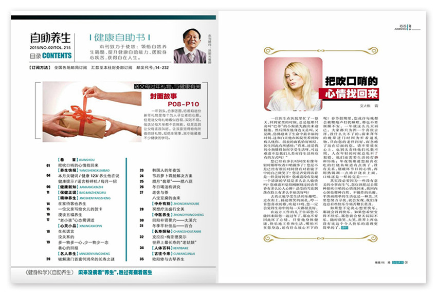 以40-60歲的中老年人為主要讀者群體,定位于有一定經(jīng)濟(jì)條件同時(shí)關(guān)注養(yǎng)生、有精力有時(shí)間有能力的中老年人,除了傳達(dá)“以養(yǎng)防病、以養(yǎng)祛病”的理念外,還會(huì)是一本關(guān)注中老年人及家庭成員身心健康的養(yǎng)生期刊。
