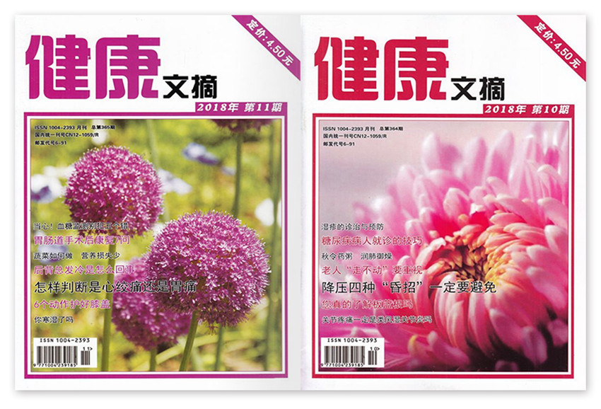 《健康文摘》,創(chuàng)刊于2006年,期望通過自身在傳播領域的資源優(yōu)勢,給我們帶來高品質生活,紙張開本:16開,國內刊號:CN:12-1059/R。傳播與人民健康息息相關的醫(yī)藥衛(wèi)生、治病防病、養(yǎng)生保健、科學生活等知識,從而達到增加讀者保健意識,提高讀者保健能力,改變不良生活習慣。
