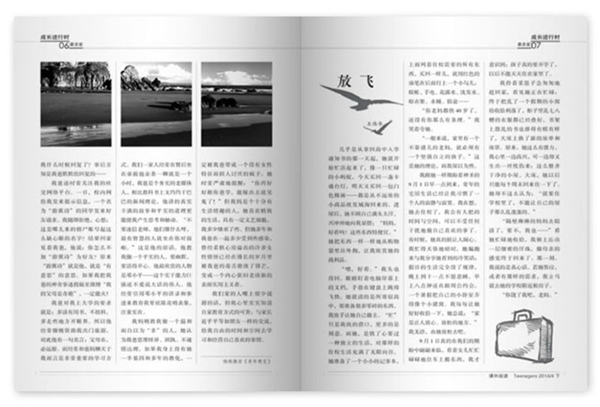《課外閱讀》,創(chuàng)刊于2002年,期望通過自身在傳播領(lǐng)域的資源優(yōu)勢,給我們帶來高品質(zhì)生活,紙張開本:16開,國內(nèi)刊號:CN:11-4602/G4。一本適合小學高年級和初中低年級學生閱讀的一本純閱讀期刊,里面的故事生動有趣,引人入勝;插圖盡管不是那么的色彩艷麗,卻別有一番風味,簡單而不失精致。期刊里的文章也不乏許地山、莫言、梁曉聲、余秋雨等一些文學大師的作品,讓我們的讀者足不出戶就能納百家之言,知利己之識,長益己之志。