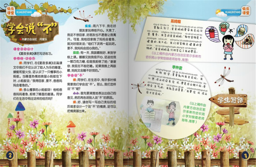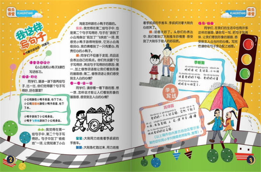 《快樂作文》“快樂課堂”欄目緊密配合“人教版”“冀教版”“蘇教版”等各版本教材中的作文訓(xùn)練內(nèi)容,與作文教學(xué)同步,內(nèi)容體現(xiàn)教學(xué)過(guò)程和教法、學(xué)法,使學(xué)生高高興興、輕輕松松學(xué)作文。