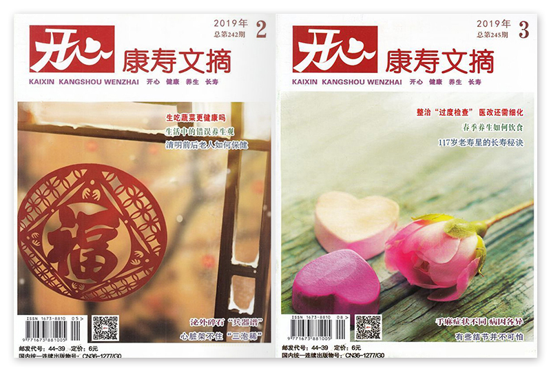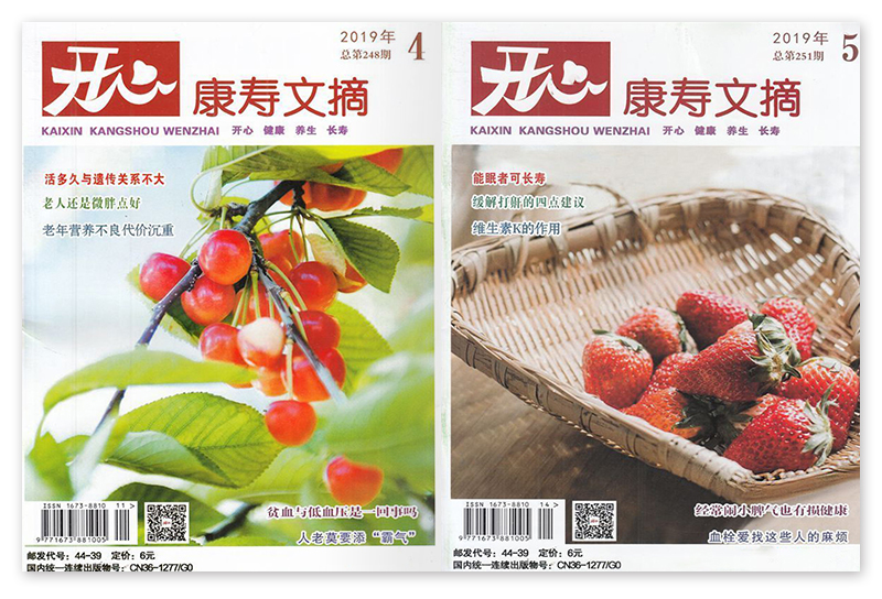 《康壽文摘》創(chuàng)辦于2007年,月刊,單期80頁,《開心·康壽文摘》每期內(nèi)容均精選自全國百余種書、報、刊、網(wǎng)絡有關(guān)老年人健康長壽、保健養(yǎng)生方面的文章,強調(diào)內(nèi)容的科學性、實用性、針對性和可讀性。