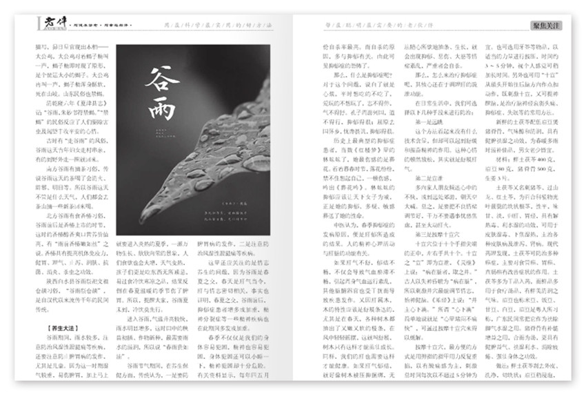 傳統(tǒng)習(xí)俗,清禁殺五毒:谷雨以后氣溫升高,病蟲害進入高繁衍期,為了減輕病蟲害對作物及人的傷害,農(nóng)家一邊進田滅蟲,一邊張貼谷雨貼,進行驅(qū)兇納吉的祈禱;漁家流行谷雨祭海:谷雨時節(jié)正是春海水暖之時,百魚行至淺海地帶,是下海捕魚的好日子,俗話說“騎著谷雨上網(wǎng)場”,為了能夠出海平安、滿載而歸,谷雨這天漁民要舉行海祭,祈禱海神保佑。