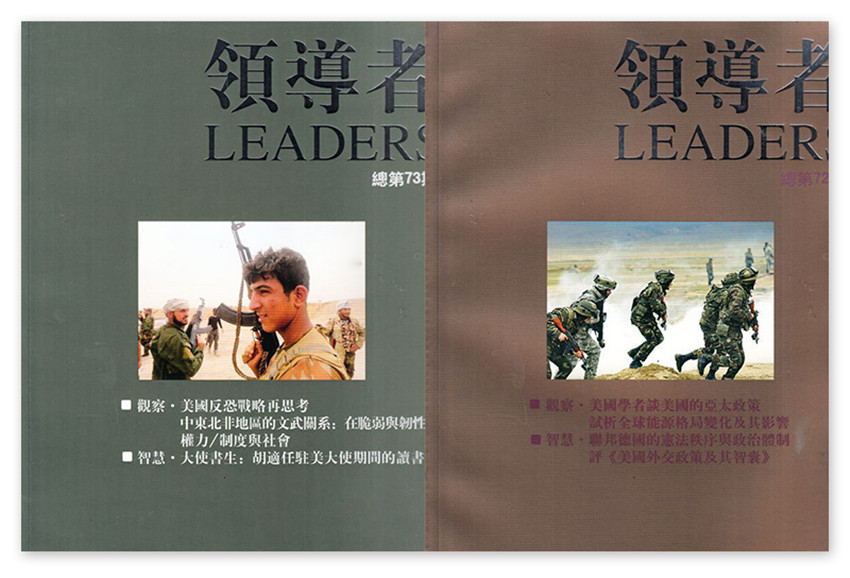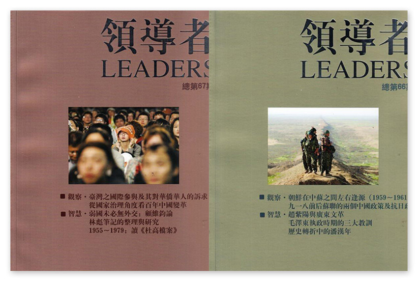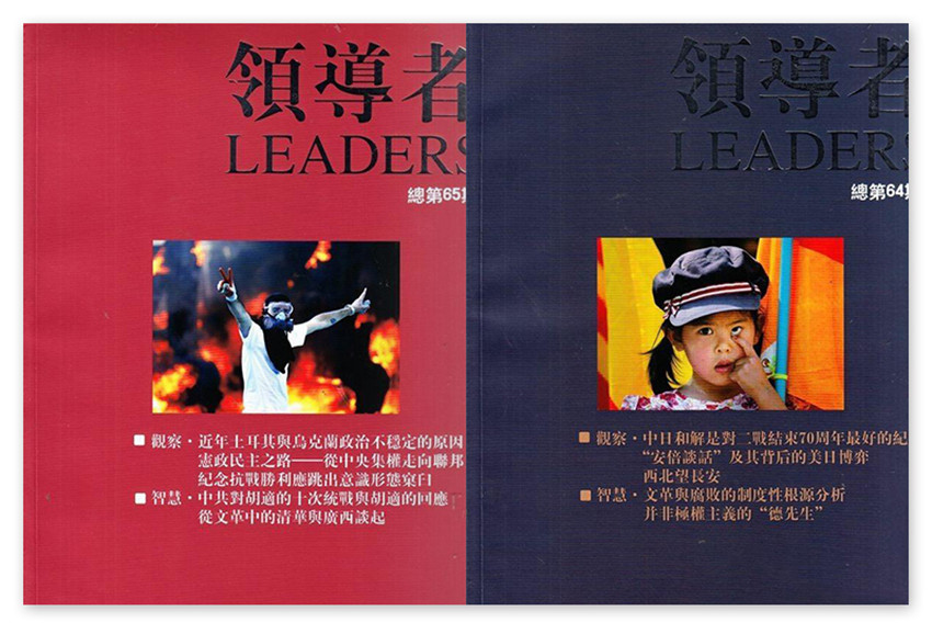 《領(lǐng)導(dǎo)者》雜志是中國一本針對領(lǐng)袖人群的高端大型雜志,主要內(nèi)容涉及政治、經(jīng)濟、軍事、外交的戰(zhàn)略性全局性的觀點和思考;重大歷史事件的回顧;世界著名領(lǐng)袖的傳記;科技新資訊;高端人群關(guān)注的醫(yī)療、健康、出行、收藏、置業(yè)等。