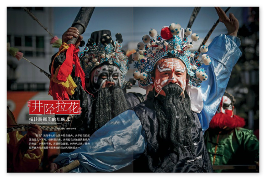 井陘拉花,“上到九十九,下到剛會(huì)走,井陘拉花遍地扭”。還沒到井陘,就先聽到了這樣一句話,可見,井陘拉花在當(dāng)?shù)厝酥械钠占俺潭冉^非一般。以往來石家莊,都是在四五月左右,這里的天氣比起我的家鄉(xiāng),總是要熱上幾分。而這一次的冬季井陘之旅,雖沒有四五月時(shí)的似火驕陽,卻激發(fā)了我如同井陘拉花一般的火熱激情。井陘拉花,用她獨(dú)特的趣味與熱情喚起我心中的濃濃年味兒。