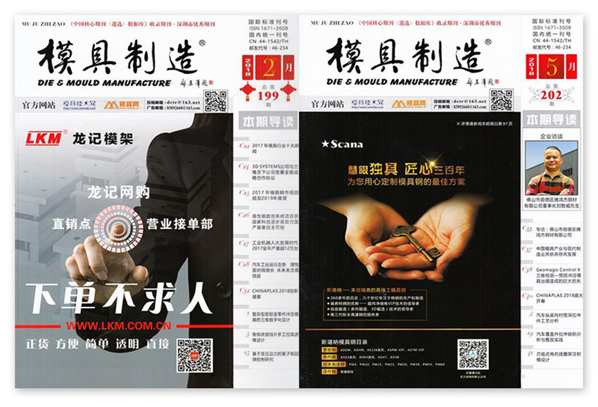 《模具制造》創(chuàng)辦于2001年,月刊,單期96頁,《模具制造》雜志是由國家科技部和國家新聞出版署批準在國內(nèi)外合法公開發(fā)行的大型科技期刊,本刊實用性較強,對工廠企業(yè)很有幫助,是目前中國發(fā)行量具影響力的模具專業(yè)雜志之一。