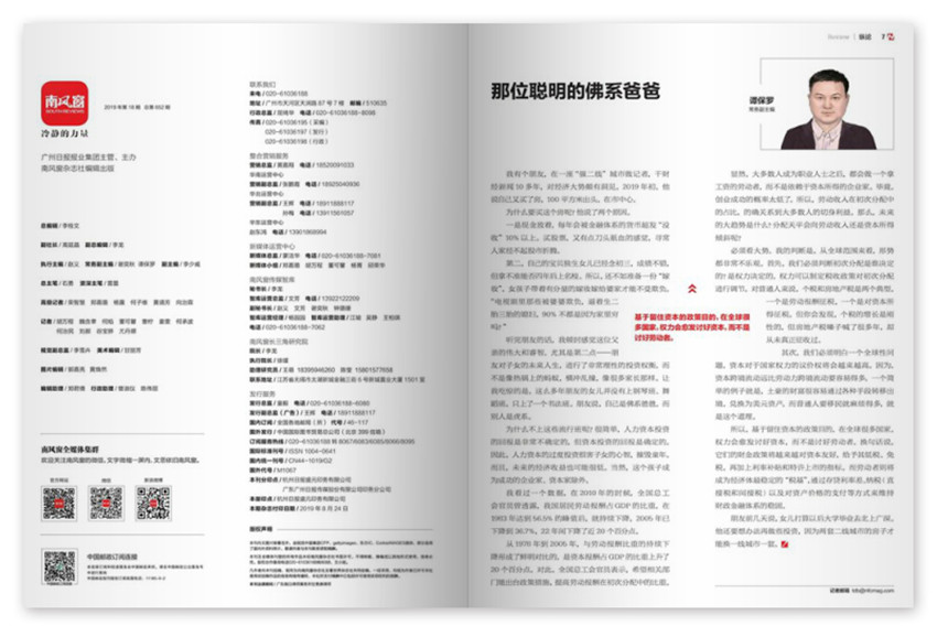 不會(huì)晦澀難懂,但又不淺顯直白,這是《南風(fēng)窗》內(nèi)容的風(fēng)格。將晦澀的知識(shí)用常人讀懂的語言講述,讓讀者較快明了,再引導(dǎo)讀者學(xué)會(huì)思考:廣州電營商改革的背后暗藏著什么、巴格達(dá)迪的死又意味著什么.....用短時(shí)間了解,用長時(shí)間思考。