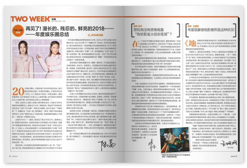 《南都娛樂周刊》創(chuàng)辦于2006年,半月刊,單期70頁,《南都娛樂周刊》,中國富原創(chuàng)精神和人文情懷的高端娛樂雜志,中國具娛樂精神的原創(chuàng)新聞周刊,中國具影響力的娛樂新聞周刊,是都市高端人群張揚個性、舒緩壓力、獲取智慧的心靈讀物。