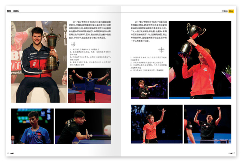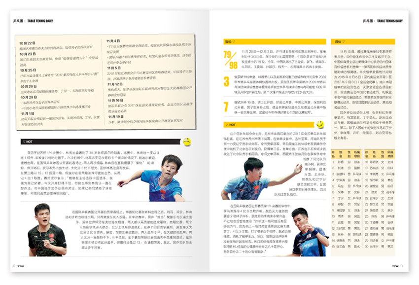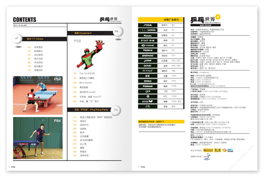 《乒乓世界》創(chuàng)辦于1981年,月刊,單期168頁(yè),《乒乓世界》圖文并茂,活潑生動(dòng),欄目貼近讀者、可讀性、實(shí)用性強(qiáng),深受廣大讀者的歡迎和喜愛(ài),展示中外選手的成才之路及先進(jìn)的訓(xùn)練方法和技術(shù),是廣大乒乓球愛(ài)好者的良師益友。