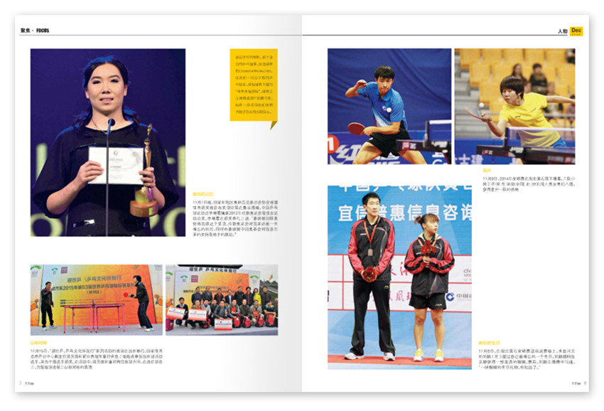 《乒乓世界》主要欄目:特別報(bào)道、國(guó)手探營(yíng)、海外星蹤、火線(xiàn)傳真、等。
