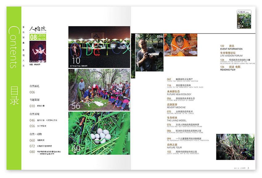 《人與自然》主要欄目:自然的生命、民族民俗、生存樣本、卷首語(yǔ)、專(zhuān)題策劃、自然面孔、等。