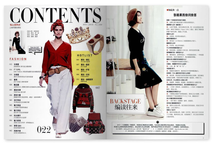 有近二十年歷史的老刊駐顏有術(shù),明艷動人,以自己獨特的內(nèi)容版塊和欄目設(shè)置得到了讀者朋長期的關(guān)注,許多欄目都成為經(jīng)典的保留欄目,我們還為讀者留出了與雜志互動的空間,相應(yīng)的內(nèi)容也成為上海服飾的著名特色。