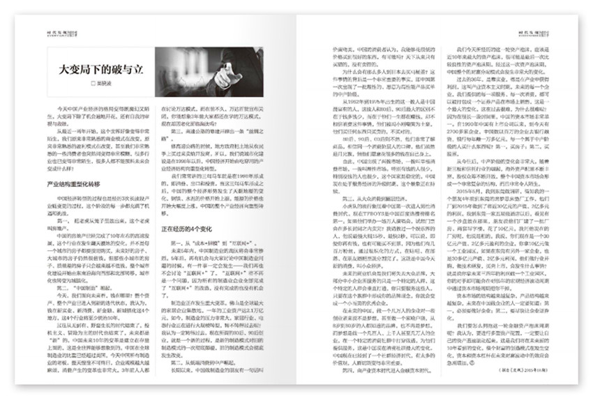 《時(shí)現(xiàn)》創(chuàng)辦于2010年,月刊,《時(shí)現(xiàn)》雜志定位于“成熟人士的知性讀本”,以“品鑒發(fā)現(xiàn),捕獲精彩,分享人生”為辦刊理念,倡導(dǎo)“分享這世界的不同”的辦刊宗旨。