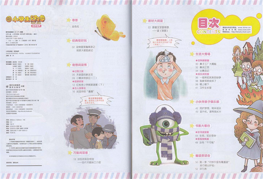 《世界兒童小學生閱讀》主要欄目:經(jīng)典小書閣、美文淘寶店、課文連連看、讀寫夢工廠、歡樂QQ堂、開心雙語園。