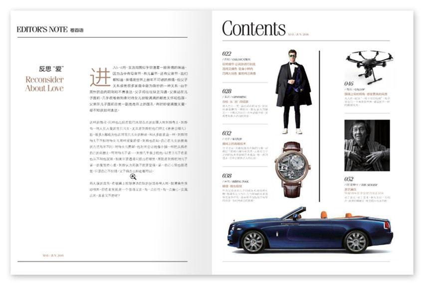 在這個(gè)東西方文化交融下,《紳士生活》秉承著品牌一貫的主張——穩(wěn)重大氣的外表,一顆躍動(dòng)的心,交融東西方智慧,分享知識(shí)及生活樂(lè)趣,共同邁入所追尋的貴氣,品位,品質(zhì),個(gè)性的紳士舒適生活,為中國(guó)精英人士提供有價(jià)值的貴氣、品位、品質(zhì)生活范本,是富人及精英階層的生活意見(jiàn)領(lǐng)袖。