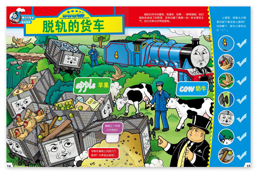 《漫趣·托馬斯與朋友》主要欄目:智力火車頭、機(jī)車放大鏡、雙語(yǔ)候車室、心情時(shí)刻表、圖畫(huà)故事車廂、貼畫(huà)故事車廂、我的小火車故事、晚安多多島。
