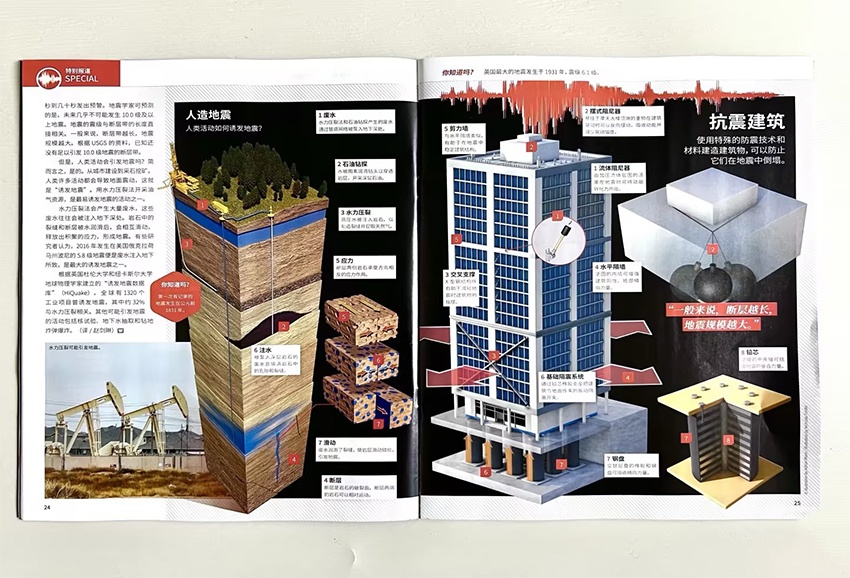 雜志的核心特色在于令人驚嘆的三維視覺解構圖,將宇宙、科技、工程、自然等宏大主題層層剖析,清晰呈現(xiàn)內(nèi)部結構與運作機制。內(nèi)容橫跨交通運輸、生態(tài)環(huán)境、歷史考古、太空探索、人工智能等七大領域,每期聚焦一個前沿科技專題,將知識融入驚心動魄的科學故事中,讓閱讀如同觀看一部紙上紀錄片。