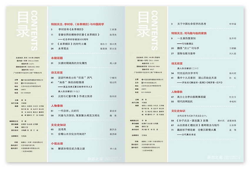 《文史知識(shí)》主要欄目:筆談、文史百題、詩(shī)文欣賞、文物與考古、古代科技漫話、人物春秋。