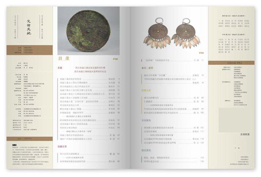 《文物天地》開設(shè)有館藏珍萃、展覽賞析、收藏大觀、市場聚焦、綜合資訊五個板塊。