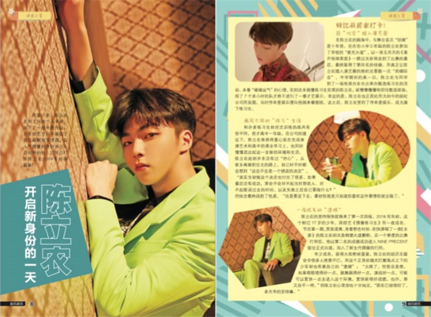 陳立農(nóng)出生于臺灣省高雄市,小時候幫忙分擔(dān)家計,9歲便跟隨父親在夜市賣烤魷魚,初中三年級與家人在夜市賣雪糕,陳立農(nóng)高中就讀于南強工商表演藝術(shù)科;2015年,他被星探挖掘,并在臺灣參加了選秀比賽。之后,他與傳奇星娛樂簽約,成為旗下練習(xí)生。2018年1月,參加愛奇藝偶像男團競演養(yǎng)成類真人秀節(jié)目《偶像練習(xí)生》,在首輪才藝考核中,獲得了A等評價。