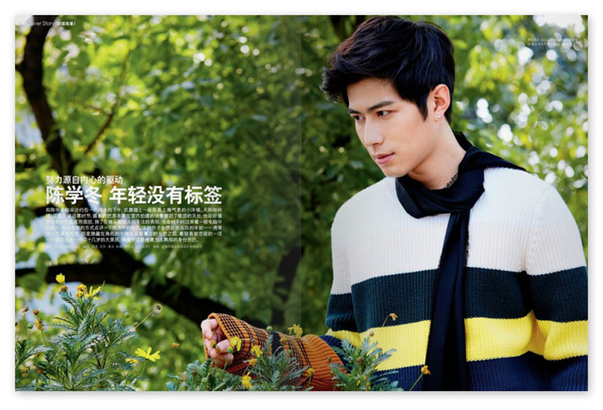 陳學(xué)冬,年輕沒(méi)有標(biāo)簽,和陳學(xué)冬的采訪約在一個(gè)周末的下午,武摩路上一座很具上海氣息的小洋樓。天剛剛轉(zhuǎn)晴,正是乍暖還寒時(shí)節(jié),攝影師把原本要在室內(nèi)拍攝的場(chǎng)景挪到了樓頂?shù)奶炫_(tái),他卻好像并沒(méi)有太為溫度所困擾,除了在鏡頭前投入而專注的表現(xiàn),也會(huì)時(shí)不時(shí)過(guò)來(lái)看一眼電腦中的成片,并以自嘲的方式點(diǎn)評(píng)一下照片中的自己,這時(shí)你才會(huì)想起他實(shí)際的年齡——通常對(duì)一個(gè)演員而言,那是隱藏在角色的個(gè)性以及銀幕上的光芒之后,容易被忽視的一項(xiàng)——到底還是一個(gè)二十幾歲的大男孩,偶像不過(guò)是他為人熟知的身份而已。