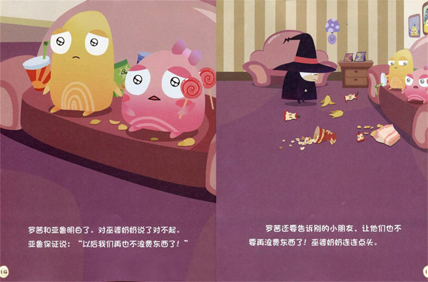 羅茜和亞魯明白了。對巫婆奶奶說了對不起。亞魯保障說:“以后 我們再也不浪費東西了!”羅茜還要告泝別的小朋友、讓他們也不要浪費東西了!巫婆奶奶連連點頭。