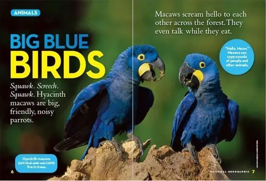 在讀物方面,《幼兒國家地理》雜志提供了多個故事、童謠、詩歌等內容,故事涵蓋廣泛的主題和不同的文化背景,有的故事以趣味性和幽默感字拼成了全新的風格;詩歌以簡單朗讀的方式呈現(xiàn),增加兒童口語表達的機會和語音聽覺的訓練。