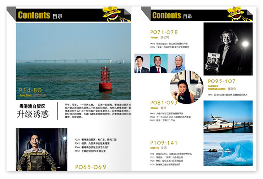 《粵商》主要欄目:活動(dòng)平臺(tái)EVENTS PLATFORM、廣東機(jī)會(huì)、CANTONESE BUSINESS、智慧WISDOM、封面人物PEOPLE等。