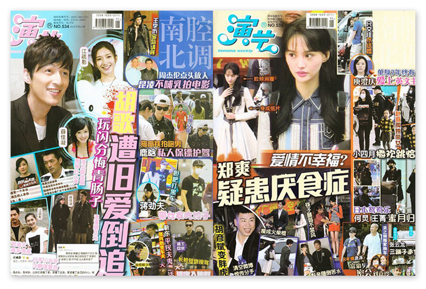 《演藝周刊》雜志滿足了現(xiàn)代社會(huì)強(qiáng)大的工作壓力下,人們對(duì)于明星、名人的生活方式、情感歷程等話題的高漲興趣。