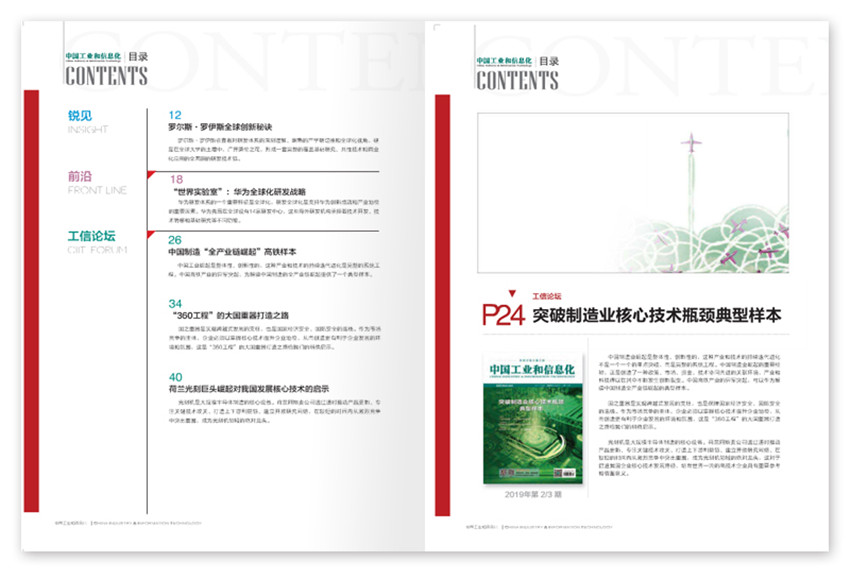 《中國(guó)工業(yè)和信息化》主要欄目:工業(yè)領(lǐng)袖、視野、管理經(jīng)緯、專題研究等。