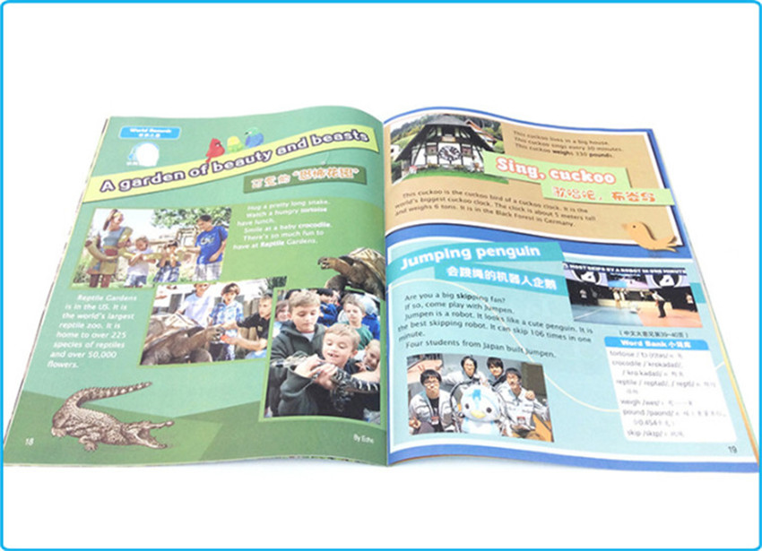 《中國少年英語報》三四年級的孩子很容易注意力不集中,坐不住,而這本雜志的內(nèi)頁設(shè)計顏色明亮抓眼球,還有生動可愛的人物引導(dǎo)、溫馨有趣的童真故事,貼近生活的對話場景,可愛益智的探索游戲以及百科知識小科普,這些都讓孩子們覺得新奇有趣。